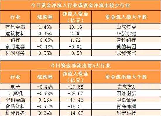 有色金屬行業(yè)凈流入10.16億元居首