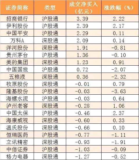 今日滬股通和深股通前十大活躍股