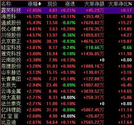 隨著上市公司進(jìn)入上半年業(yè)績(jī)披露季,A股的半年報(bào)行情也正式拉開序幕,近期公布業(yè)績(jī)預(yù)增的個(gè)股大幅走強(qiáng)。截至發(fā)稿,【露笑科技(002617)、股吧】、海思科、通威股份、川恒股份等多股均不同程度拉升。