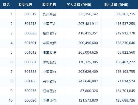 前十大成交股中,招商銀行、【隆基股份(601012)、股吧】、溫氏股份凈買入居前,分別獲凈買入1.99億元、1.99億元、2.58億元;凈賣出貴州茅臺1.65億元,中國平安1.19億元。