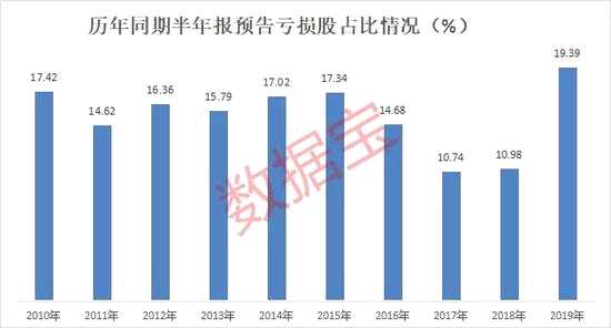 上半年業(yè)績預(yù)虧減虧個(gè)股數(shù)量達(dá)到316只,數(shù)量創(chuàng)歷史新高;占已出業(yè)績預(yù)告?zhèn)€股比例達(dá)到19.39%,創(chuàng)出近十年來同期新高。