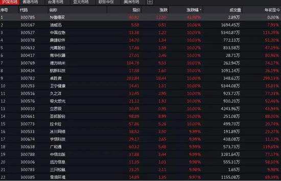 從板塊表現(xiàn)看,云計算、大數(shù)據(jù)、高端制造等板塊漲幅居前,除當(dāng)日上市的新股之外,共有22只創(chuàng)業(yè)板個股出現(xiàn)漲停。