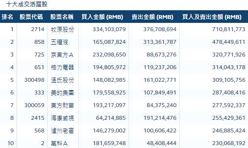 賣出方面,五糧液凈賣出居首,金額為1.48億元,貴州茅臺(tái)、海康威視分別遭凈賣出1.45億元、1.27億元。