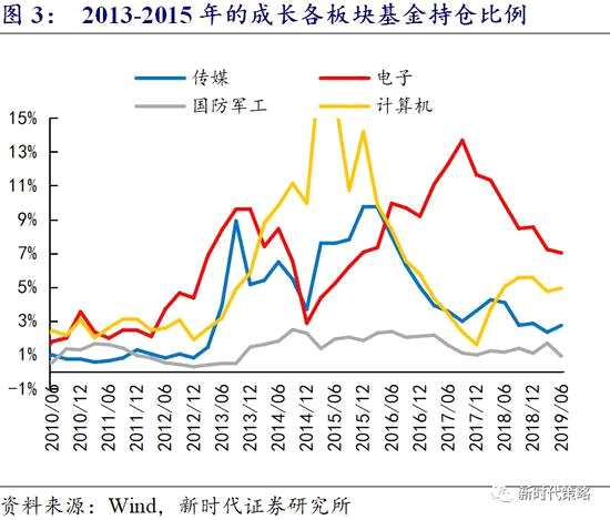 ?。?)2013-2015年成長抱團的經(jīng)驗。2013年每個季度成長都跑贏市場,到2014年之后,雖然基金持倉不斷增加,但每次增加成長持股兩個季度后,都會有一次大級別減倉,說明牛市中后段,公募雖然看好成長,但是已經(jīng)達到了調(diào)倉的極限。市場的上漲靠的是增量資金,而不是抱團。