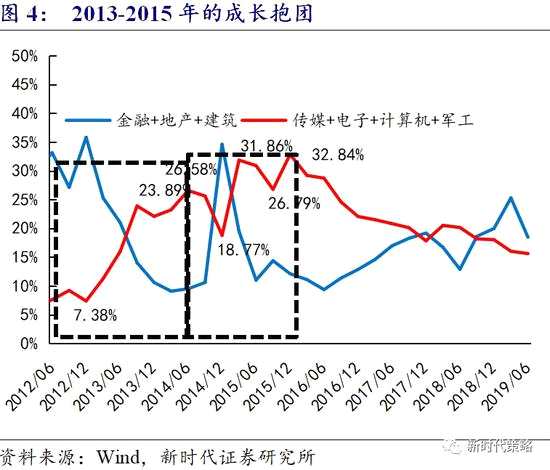 另一點變化是,2013年-2015年的核心方向是成長,但是在此期間,成長在不斷進化,不斷由有業(yè)績的傳媒電子轉(zhuǎn)變?yōu)橛嬎銠C和軍工。從基金持倉來看,2012年公募基金最先增倉電子,2013年上半年快速增倉傳媒,2013年下半年開始轉(zhuǎn)變?yōu)橛嬎銠C,2014年不斷增配軍工。所以當(dāng)下的核心資產(chǎn)要想繼續(xù)上漲,需要擴散到其他價值股,其他基本面稍差一些的價值股,這也會帶來核心資產(chǎn)階段性表現(xiàn)低于市場的預(yù)期。