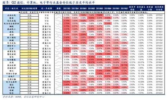 從個(gè)股的角度來(lái)看,重倉(cāng)股投資集中程度上升,成長(zhǎng)科技龍頭配置價(jià)值并未受行業(yè)減持而削弱。2019Q2主動(dòng)型基金重倉(cāng)股持股總市值前20的個(gè)股包括貴州茅臺(tái)、中國(guó)平安、五糧液、格力電器、招商銀行等,持股總市值1998.2億元(前值1459.01億元),占股票投資比重39.82%(前值32.14%),從占比的角度來(lái)看較2019Q1集中趨勢(shì)增強(qiáng)。而對(duì)于科技成長(zhǎng)板塊,行業(yè)龍頭的配置價(jià)值并未受行業(yè)減持而削弱,反而進(jìn)一步在增強(qiáng)。以計(jì)算機(jī)行業(yè)為例,“抱團(tuán)”現(xiàn)象再度歸來(lái),持倉(cāng)趨于集中。在絕對(duì)指標(biāo)方面,2019年Q2基金前十大重倉(cāng)股中的計(jì)算機(jī)公司數(shù)量為108家,低于2019年Q1(2017年Q2-2019年Q1分別為89家、96家、89家、101家、102家、91家、103家、118家)。基金重倉(cāng)的這108家計(jì)算機(jī)板塊公司絕大多數(shù)都出現(xiàn)了持倉(cāng)上升,僅有44家持倉(cāng)下降;在相對(duì)指標(biāo)方面,持倉(cāng)市值前十大公司的市值占比為49.55%,較2019Q1時(shí)的47.55%有所提升,持倉(cāng)市值前二十大公司的市值占比為73.51%,也高于2019Q1時(shí)的71.44%,說(shuō)明此前籌碼向持倉(cāng)市值較大公司集中的“抱團(tuán)”趨勢(shì)再度歸來(lái),持倉(cāng)趨于集中。(以上研究結(jié)論來(lái)自安信計(jì)算機(jī)團(tuán)隊(duì)。)