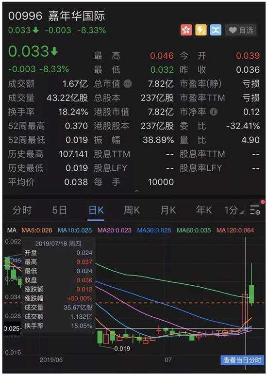今年3月20日曾暴跌52%的嘉年華國際18日也放量大漲50%。嘉年華國際同樣也是港股通標的。