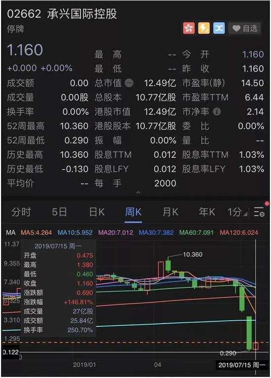 港股通標的承興國際控股本周累計漲幅達147%。該股7月8日因董事長羅靜被刑拘出現(xiàn)閃崩,當日暴跌80%,本周大幅反彈。若是從7月11日創(chuàng)出的閃崩后歷史低位0.29港元算起,該股已累計反彈300%。