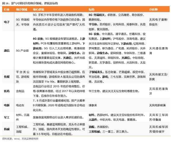 3、景氣回升的細(xì)分領(lǐng)域及標(biāo)的——天風(fēng)各行業(yè)聯(lián)席解讀