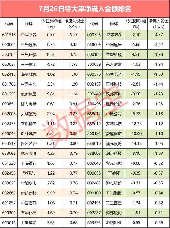 特大,流出,流入,資金,行業(yè)
