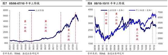 定性:目前是牛市第一波上漲后的休整后期。4月8日上證綜指3288點(diǎn)以來市場的調(diào)整已三個多月,近期市場明顯縮量、小幅震蕩,投資者的心態(tài)已有所疲憊,3月底4月初的牛市信心已經(jīng)明顯減退。我們認(rèn)為,牛市的大格局并未改變,市場正處在牛市第一波上漲后的休整后期。我們在《牛市有三個階段-20190303》中根據(jù)盈利和估值關(guān)系將牛市分為三個階段:第一階段是孕育期,這一階段宏觀基本面仍在下行,企業(yè)盈利增速回落找底中,但宏觀政策已偏暖,流動性好轉(zhuǎn),估值修復(fù)推動市場上漲。這個階段市場進(jìn)二退一,回吐較大,整體偏震蕩,為牛市全面爆發(fā)做準(zhǔn)備。第二階段是爆發(fā)期,基本面拐點(diǎn)出現(xiàn),企業(yè)盈利觸底回升,盈利和估值均上行,形成戴維斯雙擊,牛市全面爆發(fā),這個階段市場漲幅最大。第三階段是泡沫期,此時盈利增速已趨于平緩,失去第二階段的加速度,但以散戶為代表的增量資金仍在加速進(jìn)場,推動市盈率走向市夢率,構(gòu)筑市場泡沫,形成最后一沖。上證綜指從2440點(diǎn)開始進(jìn)入了牛市第一階段即孕育準(zhǔn)備期,2440-3288點(diǎn)屬于牛市第一階段上漲,邏輯是宏觀基本面仍在下行,企業(yè)盈利增速回落找底中,但宏觀政策已偏暖,流動性好轉(zhuǎn),估值修復(fù)推動市場上漲。隨著估值修復(fù)到位,由于4月之后基本面沒跟上,工業(yè)增加值、消費(fèi)、投資、出口等數(shù)據(jù)均出現(xiàn)下滑,3288點(diǎn)以后市場進(jìn)入牛市第一階段上漲后的回撤,我們前期報(bào)告《四月決斷-20190406》、《小心溜車-20190421》、《這波調(diào)整的性質(zhì)及前景-20190505》都有分析過。整體上我們認(rèn)為當(dāng)前市場處在牛市第一階段的休整后期,歷史上這個階段的市場都出現(xiàn)了明顯的縮量,對比05/06-05/12,市場在牛市第一階段末期日均成交額在81億元左右,前期成交額高點(diǎn)在250億元左右;對比08/10-08/12,市場在牛市第一階段末期日均成交額在560億元左右,前期成交額高點(diǎn)在1500億元左右;回到現(xiàn)在,當(dāng)前市場的日均成交額已經(jīng)下降到了3500億左右,前期成交額高點(diǎn)在10000億元左右,三次牛市第一階段末期成交額相比于前期高點(diǎn)均萎縮30%左右。所以整體上我們認(rèn)為今年2440點(diǎn)以來的市場類似05年下半年、08年四季度,處在牛市第一階段的休整后期,需要為第二階段做準(zhǔn)備,市場屆時有望孕育新一輪的上漲。