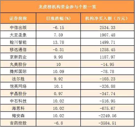 盤后龍虎榜數(shù)據(jù)顯示,機構現(xiàn)身14股,其中【中信出版(300788)、股吧】等5股呈現(xiàn)機構資金凈買入,吉藥控股(維權)等9股呈現(xiàn)機構資金凈賣出。