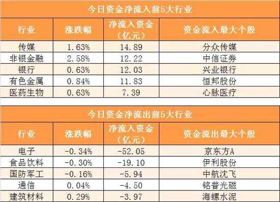 傳媒行業(yè)凈流入14.89億元居首