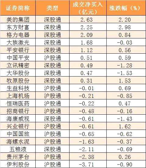 今日滬股通和深股通前十大活躍股