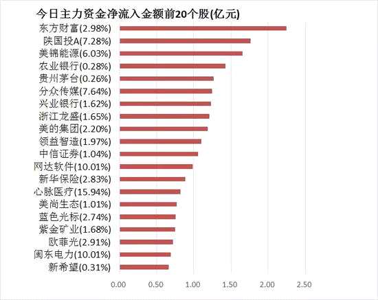 【東方財富(300059)、股吧】主力資金凈流入2.25億元居首