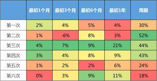 南方基金統(tǒng)計了史上6次降息周期內(nèi)的美債表現(xiàn)情況: