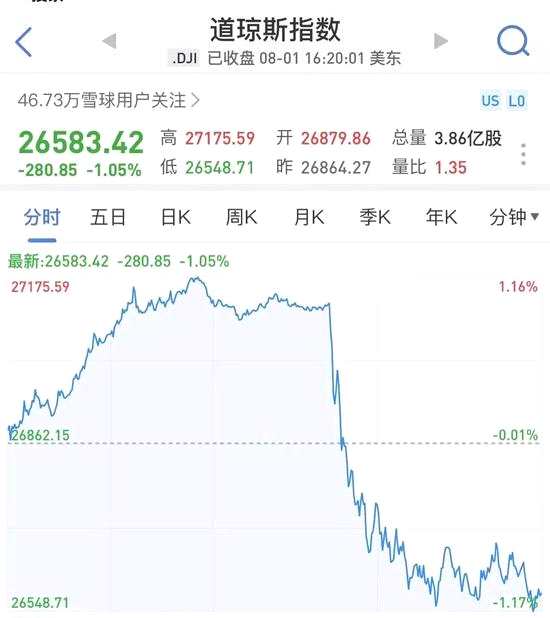 然而好景不長,美股午后迅速跳水,道指一度下跌超過300點。