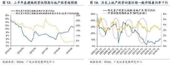 5. 秋寒至,星火將燃。市場重回“冰與火的輪回”,市場短暫承壓但上行空間大于下行風(fēng)險,“火勢再燃,將蓋過冰”,政策組合拳包括產(chǎn)業(yè)政策升級、財政政策促基建加碼、調(diào)降政策利率等,金融供給側(cè)改革主導(dǎo)貼現(xiàn)率下行、帶來的估值擴張將蓋過盈利下行預(yù)期。今年上半年“基建鏈”低預(yù)期的癥結(jié)在于“地產(chǎn)投資”的韌性好于預(yù)期,央行最新工作會議中對于房地產(chǎn)融資的表述為“持續(xù)加強房地產(chǎn)市場資金管控”,資金來源受限將傳導(dǎo)至地產(chǎn)投資下行,相應(yīng)使得未來“基建鏈”穩(wěn)增長的必要性上升。市場重回“冰與火的輪回”,政策火勢再起將對沖出口下滑及就業(yè)壓力,且運用多種政策組合齊發(fā)力:如產(chǎn)業(yè)政策升級、財政政策促基建加碼、調(diào)降政策利率等。火勢能否勝過冰?——房地產(chǎn)投資下行的區(qū)間大概率對應(yīng)著利率的下行區(qū)間,基本面和貨幣政策面將共同推動下半年廣譜利率開始真正出現(xiàn)下行。若“火勢更旺”將使得估值的擴張力度(火)再次勝過冰(盈利下行)。
