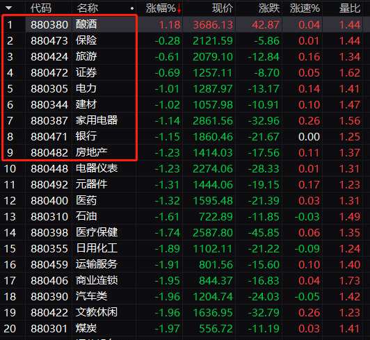 全球動蕩,A股能在一片崩盤中,相對抗跌。今日釀酒、保險、證券、電力、家電、銀行、房地產等權重板塊走強較強,釀酒板塊更是逆勢飄紅上漲逾1%。
