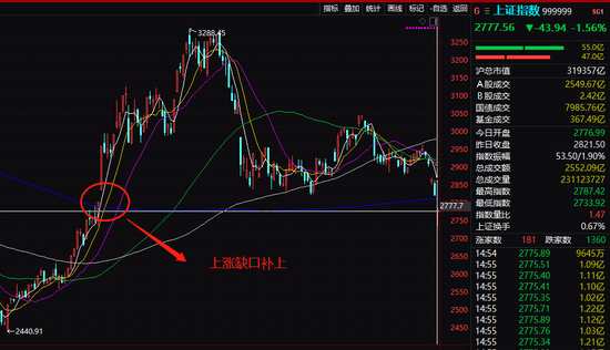 今日A股下跌,還補上了今年2月A股暴漲牛市2804點位置的缺口。這對一些技術派來說,是個偏樂觀的信號。