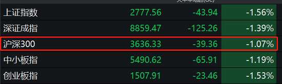 主要指數(shù)中,深證成指跌1.39%,創(chuàng)業(yè)板指數(shù)跌1.19%,權重的上證50指數(shù)僅下跌0.93%,滬深300指數(shù)跌幅也僅為1.07%。