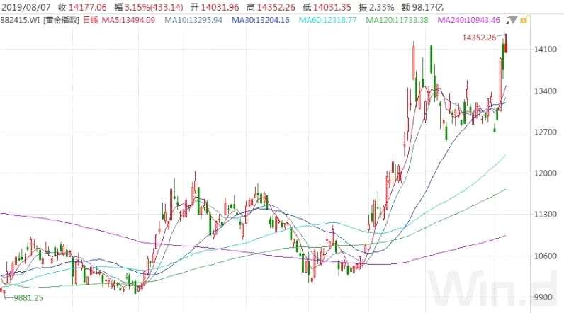 由于國際金價大漲,A股市場上黃金概念股走勢強勁。在A股調(diào)整的情況下,黃金板塊指數(shù)逆勢走強,創(chuàng)出近兩年新高。