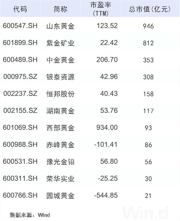 從公司市值來看,【山東黃金(600547)、股吧】和紫金礦業(yè)不相上下,從市盈率來看,兩者差距懸殊。整體來看,金礦采選類公司市盈率普遍偏高。