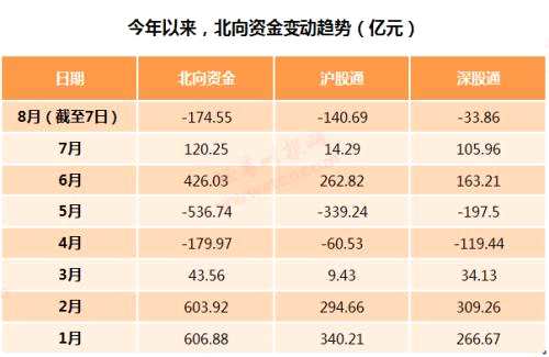 最新動(dòng)向:8月北上資金凈流出174.55億元