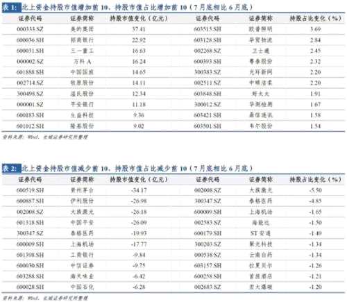 個(gè)股方面,和6月底相比,北上資金持股市值增加較多個(gè)股為美的集團(tuán)、招商銀行、三一重工、萬(wàn)科A、中國(guó)國(guó)旅、牧原股份等,持股市值減少較多個(gè)股為貴州茅臺(tái)、伊利股份、大族激光、中國(guó)平安、泰格醫(yī)藥、上海機(jī)場(chǎng)等。