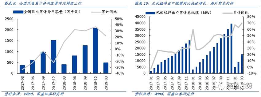 電氣設(shè)備:1)風(fēng)電:需求向好,2018年風(fēng)電新增并網(wǎng)20.59GW,同比增長(zhǎng)37.3%;2019年一季度新增裝機(jī)容量為4.78GW,同比增長(zhǎng)21.3%;同時(shí)隨著低價(jià)訂單釋放,鋼材價(jià)格的企穩(wěn),未來(lái)行業(yè)毛利率仍有改善空間。2)光伏:海外需求興起,產(chǎn)業(yè)鏈價(jià)格企穩(wěn),2018年光伏組件出口總規(guī)模39.28GW,累計(jì)同比增長(zhǎng)50.3%;2019年1-3月,我國(guó)出口組件14.88GW,同比增長(zhǎng)70.1%;未來(lái)隨著《2019年風(fēng)光項(xiàng)目建設(shè)征求意見》的落地,將進(jìn)一步帶動(dòng)國(guó)內(nèi)需求。
