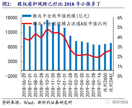 ?。?)由2018年的雙殺變成2019年的單殺。近期股市表現(xiàn)較弱,但是這種弱和2018年還是有很大的不同。2018年A股面臨的是盈利和流動(dòng)性雙殺,而2019年A股主要是對(duì)經(jīng)濟(jì)下行的擔(dān)心,對(duì)外部宏觀的沖擊,流動(dòng)性層面的擔(dān)心少很多。2018年股市先后面臨社融下降、股權(quán)質(zhì)押、私募贖回等流動(dòng)性層面的問題,背后主要是去杠桿的影響,但隨著政策的變化和利率持續(xù)近一年的下行,2019年A股流動(dòng)性出現(xiàn)問題的可能性很低,同樣的股市下跌,面臨的股權(quán)質(zhì)押等問題會(huì)比去年小很多。