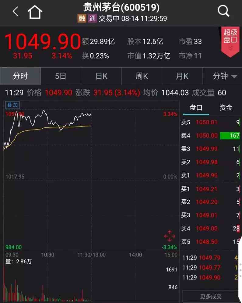 個(gè)股表現(xiàn)方面,貴州茅臺(tái)盤中一度上漲超3%,股價(jià)觸及1051元,創(chuàng)歷史新高。