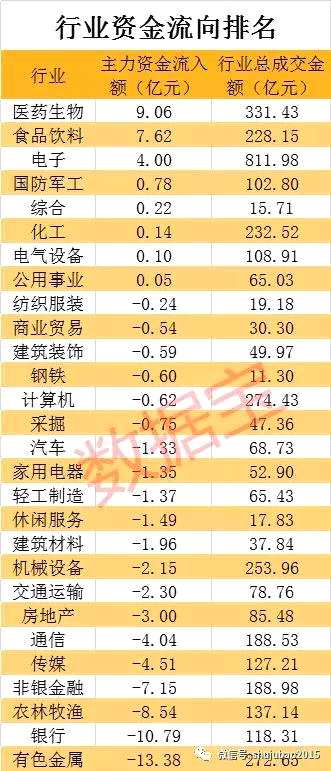 資金,流出,流入,行業(yè),今日