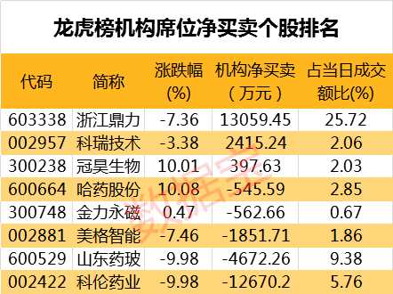 龍虎榜揭秘:機(jī)構(gòu)最青睞浙江鼎力等3股