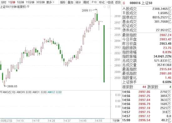 不過從今日盤面來看,尾盤北向資金一度凈流入超230億元,而在尾盤集合競(jìng)價(jià)的時(shí)候,部分上證50成分股卻被砸盤,尾盤集合競(jìng)價(jià)出逃資金逾100億,截至收盤北向資金凈流入112.71億元(港交所數(shù)據(jù))。值得注意的是,從上證50指數(shù)的尾盤來看,從2897.12點(diǎn)就直接被砸到了2887.24點(diǎn)。具體被砸的主要是以銀行、煤炭、港口、建筑、白酒等板塊個(gè)股為主。尾盤滬指從2909點(diǎn)瞬間跌到2902點(diǎn)。