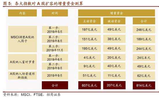 而據(jù)招商證券測(cè)算,年內(nèi)3大指數(shù)公司對(duì)A股的納入和擴(kuò)容有望帶來814億美元的資金流入。