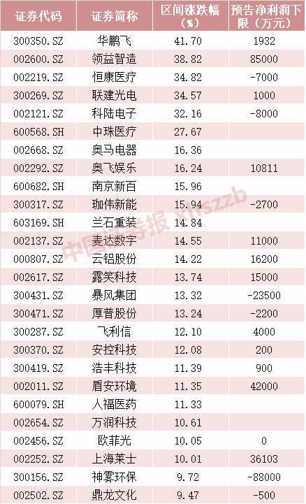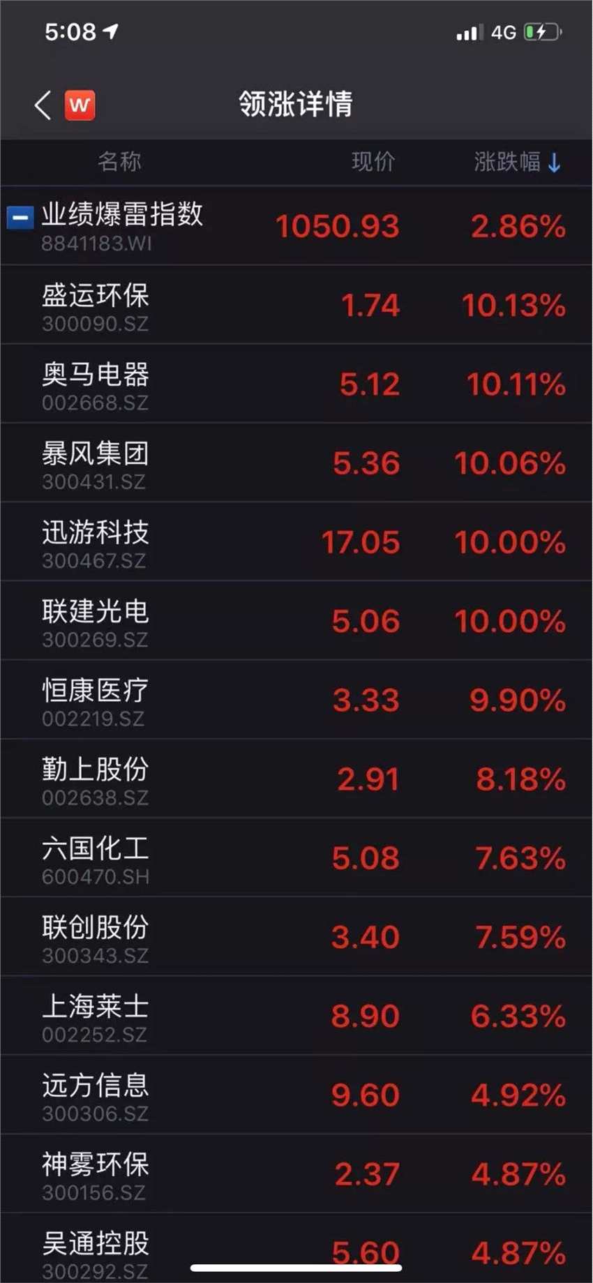 業(yè)績(jī)爆雷板塊漲幅居前個(gè)股