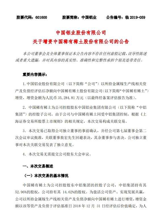 調(diào)整之后的稀土板塊,迎來(lái)相關(guān)政策利好,是否意味著這將是新一輪的上車(chē)機(jī)會(huì)?至少?gòu)南⊥列袠I(yè)參與者的角度看,稀土迎來(lái)新一輪行情的概率極大。【中國(guó)鋁業(yè)(601600)、股吧】8月27日公告,公司擬以所持金屬鎵生產(chǎn)線相關(guān)資產(chǎn)及負(fù)債經(jīng)評(píng)估后凈額,向中國(guó)稀有稀土股份有限公司增資,增資額3.53億元,持股比例將由14.62%增至23.94%。