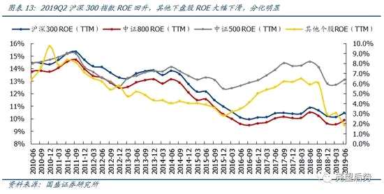 中證800指數(shù)2019Q2的ROE(TTM)為9.87%,較2019Q1的9.54%提升0.33%;
