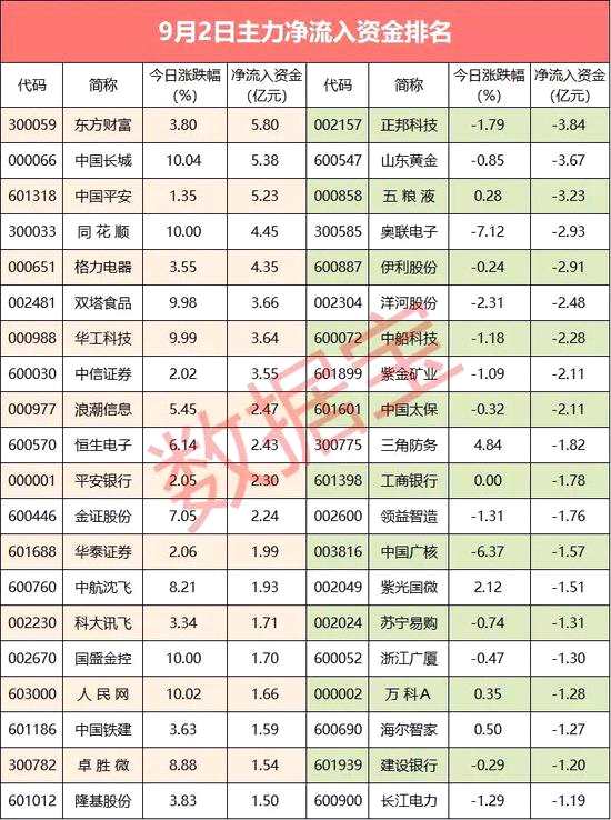 A股9月開門紅,三大股指震蕩上揚,滬指漲逾1%,深成指、創(chuàng)業(yè)板指漲逾2%。北上資金單邊凈流入53億元,滬深股通凈流入均超20億元。主力資金全天凈流入106億元,其中尾盤凈流入22億元。