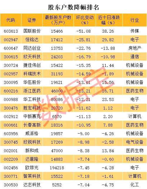 最新籌碼集中股名單,12股股東戶數(shù)大降,最牛股6天4漲停