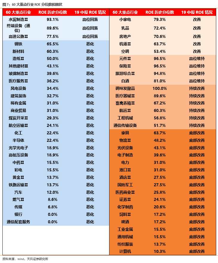 (1)ROE仍然在持續(xù)惡化,但有望較快底部企穩(wěn)的行業(yè):半導(dǎo)體、黃金、汽車、風(fēng)電。(重點(diǎn)是后兩個(gè),在股價(jià)上目前體現(xiàn)較少)