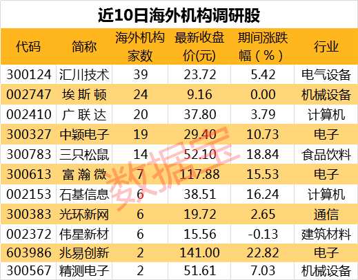 海外機(jī)構(gòu)調(diào)研股名單:匯川技術(shù)最受關(guān)注