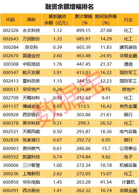394股融資余額增幅超50%