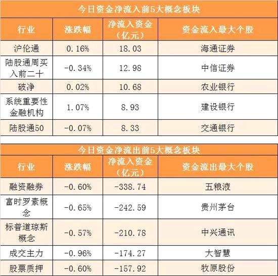 概念板塊方面,今日滬倫通、陸股通周買入前二十、破凈、系統(tǒng)重要性金融機(jī)構(gòu)等概念板塊資金呈現(xiàn)凈流入,其中滬倫通概念凈流入18.03億元居首。