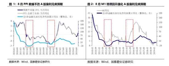 盈利與估值共振下A股有望迎來跨年行情,需把握戰(zhàn)略配置期的建倉機會。8月金融數(shù)據(jù)與PPI強化盈利下半年見底預(yù)期。8月社會融資規(guī)模較去年同期略增,新增中長期貸款較去年同期增長約1000億元,M1、M2的同比增速也較7月環(huán)比提升。金融數(shù)據(jù)領(lǐng)先A股盈利周期約半年,8月金融數(shù)據(jù)企穩(wěn)強化了A股盈利下半年見底的預(yù)期。而盡管8月PPI同比漲幅繼續(xù)下探,但-0.8的PPI好于-0.88的WIND一致預(yù)期。WIND一致預(yù)期的PPI將于9月見底后反彈。A股盈利增速略領(lǐng)先于PPI,因此PPI數(shù)據(jù)也仍支持A股下半年見盈利底的預(yù)期。結(jié)合全A非金融石油石化上市公司半年報預(yù)收賬款占總資產(chǎn)比重、經(jīng)營凈現(xiàn)金流占營業(yè)收入比重等盈利增速的先行指標(biāo)均繼續(xù)上升;PMI的訂單相關(guān)指數(shù)仍有改善,工業(yè)產(chǎn)成品庫存去化加速等證據(jù),A股下半年盈利將企穩(wěn)回升,盈利底的明確將支持A股底部中樞抬升。