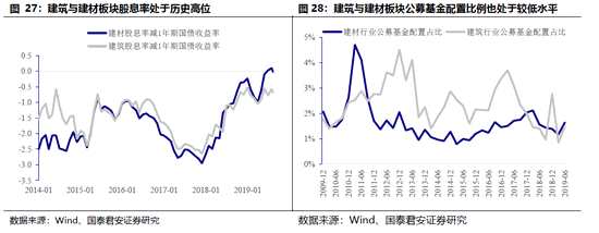 從股息率上看,周期板塊均具有吸引力。以建筑、建材行業(yè)為例,建筑、建材行業(yè)股息率與1年期國債收益率之差目前均在2014年以來最高位,因此從價值投資方面看建筑與建材板塊具有一定吸引力。從交易阻力看,周期板塊公募基金配置水平較低,向上阻力較小。仍以建筑、建材板塊為例,當(dāng)前建筑與建材行業(yè)的公募基金配置占比也處于近10年來的低位,表明2大行業(yè)機構(gòu)交易擁擠度較低。