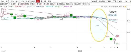 然而市場(chǎng)依然心存擔(dān)憂,9月17日、18日,*ST龐大股價(jià)連續(xù)兩日低于1元,正式觸發(fā)“面值退市”警戒線。