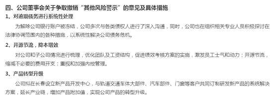 根據(jù)彼時(shí)公告,公司主營(yíng)業(yè)務(wù)還在運(yùn)轉(zhuǎn),并采取了多項(xiàng)應(yīng)對(duì)措施。
