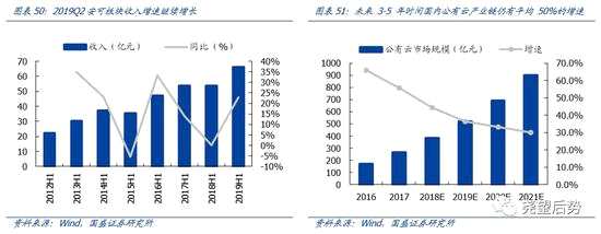 計(jì)算機(jī)2019Q2的業(yè)績(jī)?cè)鏊贋?6.2%(2019Q1為86.7%),增速有所放緩,細(xì)分行業(yè)建議重點(diǎn)關(guān)注安全可控及云計(jì)算板塊。對(duì)于安全可控,國(guó)產(chǎn)操作系統(tǒng)+國(guó)產(chǎn) CPU替代路徑明確,安可產(chǎn)業(yè)趨勢(shì)下集成電路設(shè)計(jì)和軟件企業(yè)成長(zhǎng)空間巨大。2019Q12安可板塊連續(xù)兩個(gè)季度出現(xiàn)收入增速拐點(diǎn),扣非凈利潤(rùn)大幅增長(zhǎng),研發(fā)持續(xù)加大投入,側(cè)面驗(yàn)證安可產(chǎn)業(yè)化全面開(kāi)始落地。對(duì)于云計(jì)算,從公有云發(fā)展軌跡對(duì)比,2019 年正是中國(guó)公有云對(duì)應(yīng)的是美國(guó)公有云的 2015 年,預(yù)計(jì)未來(lái) 3-5 年時(shí)間國(guó)內(nèi)公有云產(chǎn)業(yè)鏈仍有平均50%的增速,短期資本開(kāi)支的調(diào)整不改變長(zhǎng)期趨勢(shì)。同時(shí)政務(wù)機(jī)構(gòu)和產(chǎn)業(yè)企業(yè)掀起上云熱潮,產(chǎn)業(yè)互聯(lián)網(wǎng)有望在未來(lái)十年迎來(lái)黃金發(fā)展期。